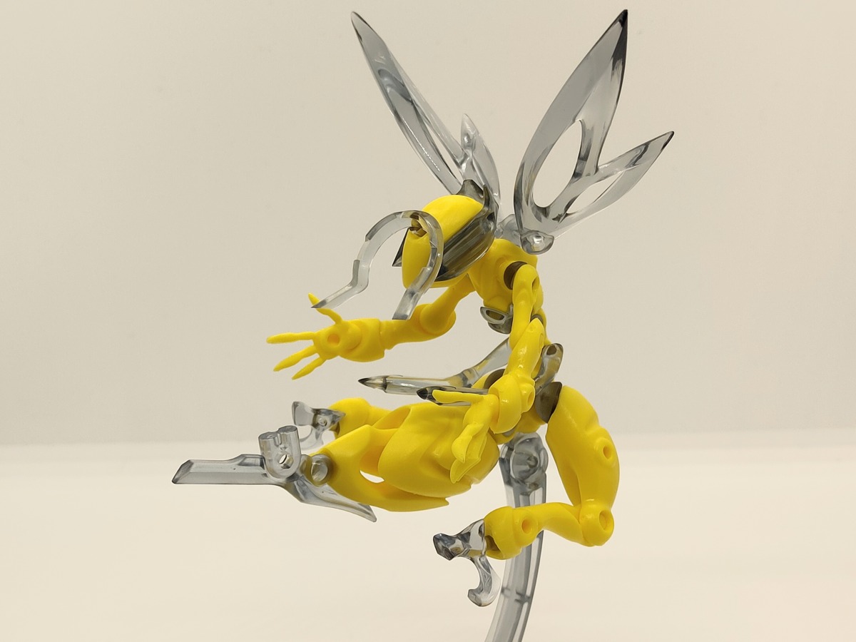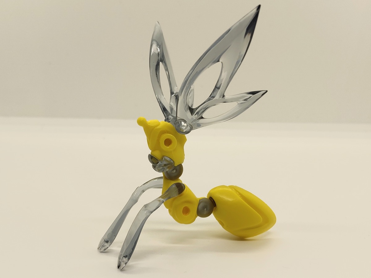 脚(後ろ脚?)の可動が逆関節になるため、より昆虫感が増すようになります。頭部を回転させることで眼が離れるようなデザインになるのもポイントです。