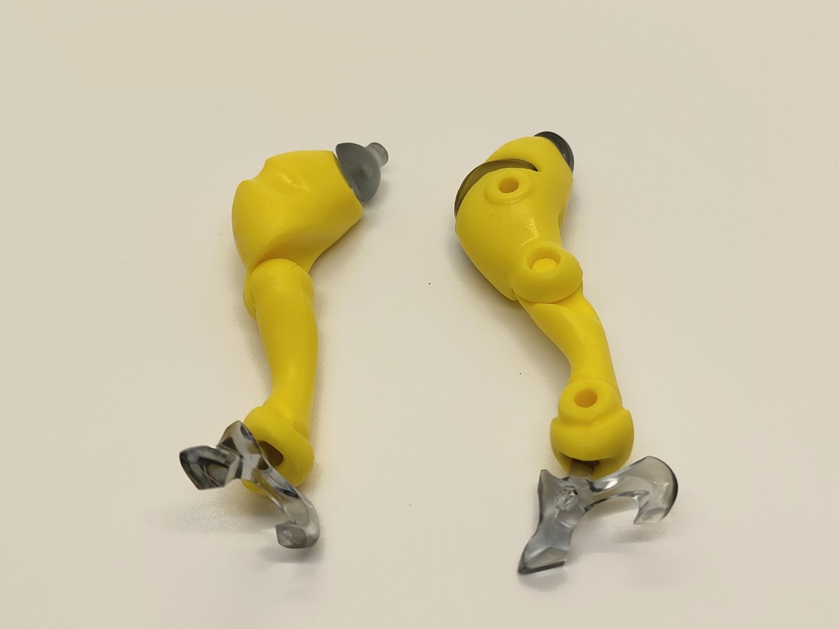 肩、股関節のパーツは独特な半円型のジョイントパーツで接続します。この形のおかげで幅の広いポージングが可能になっています。
