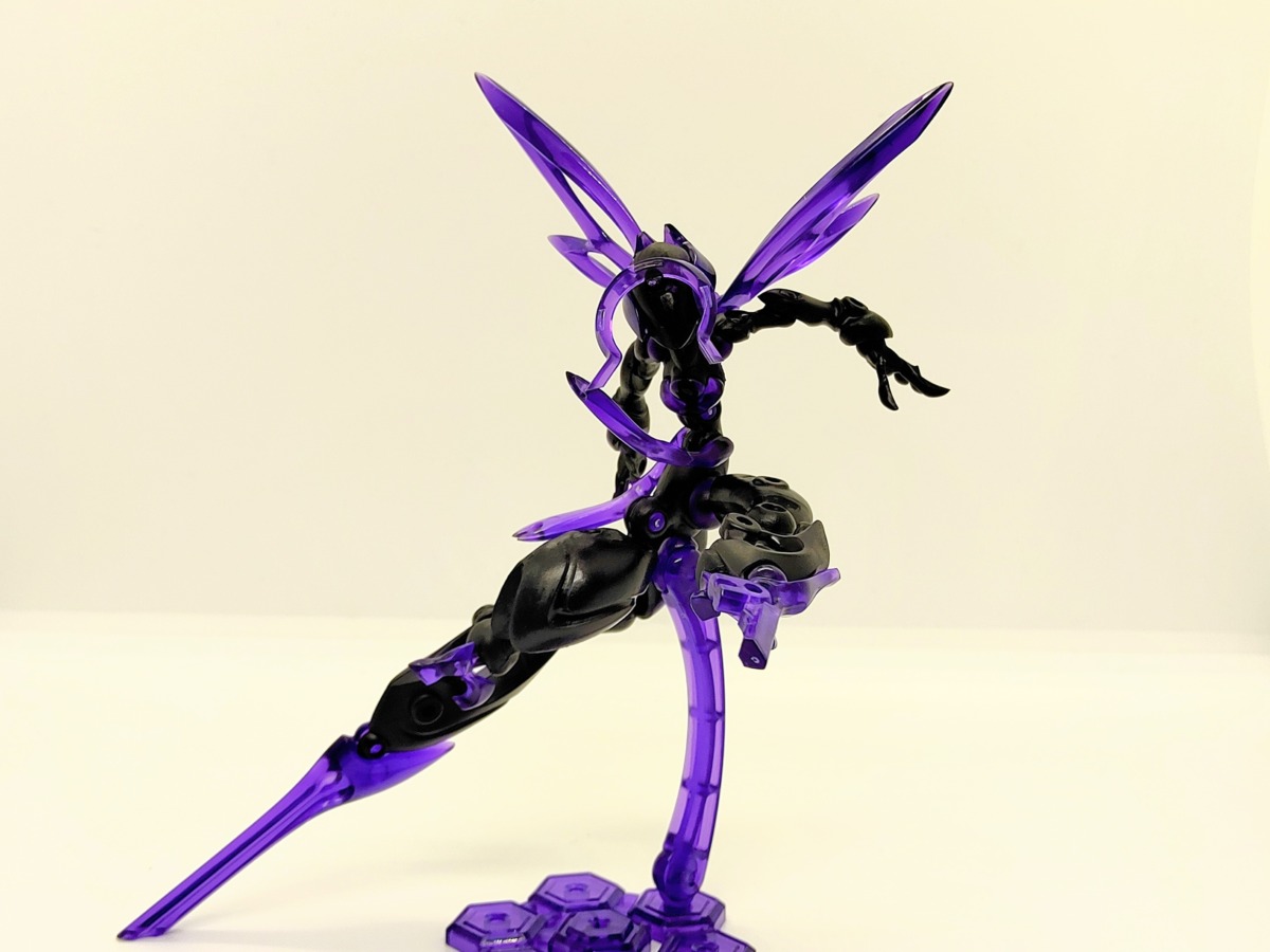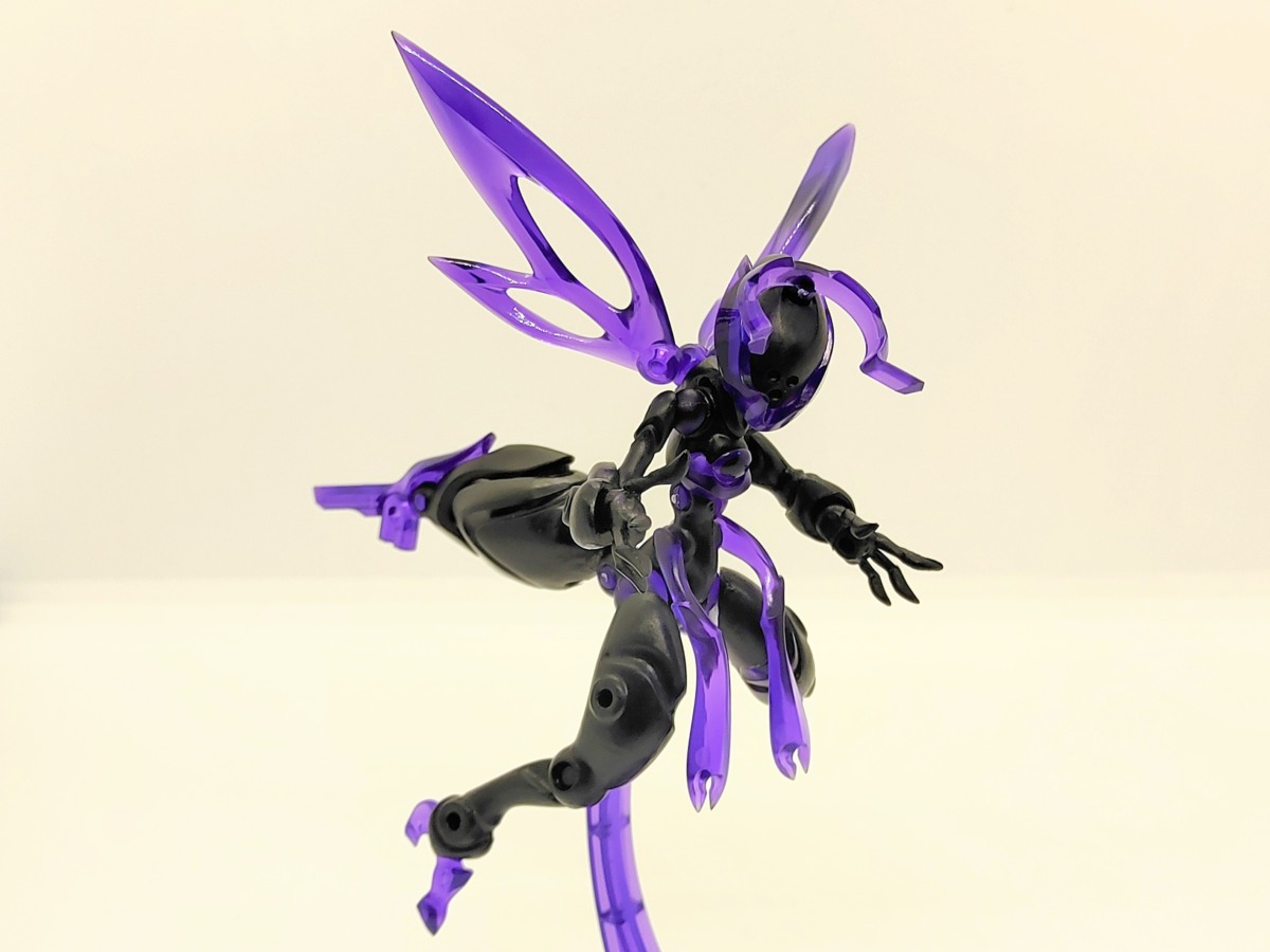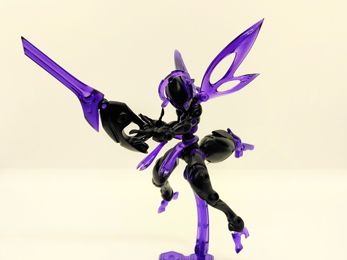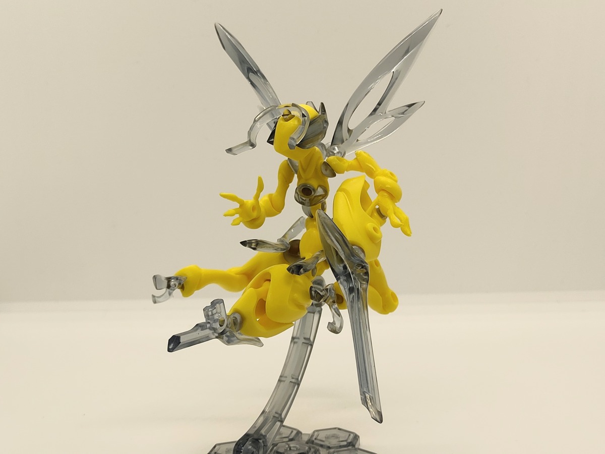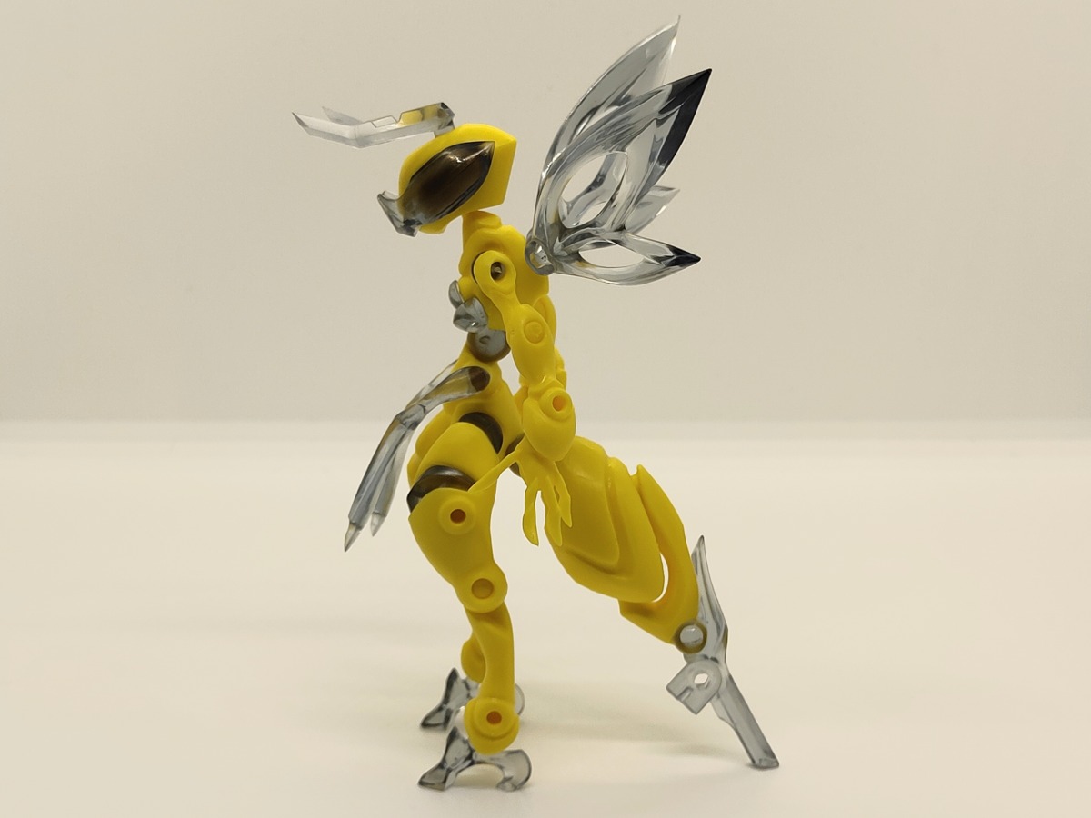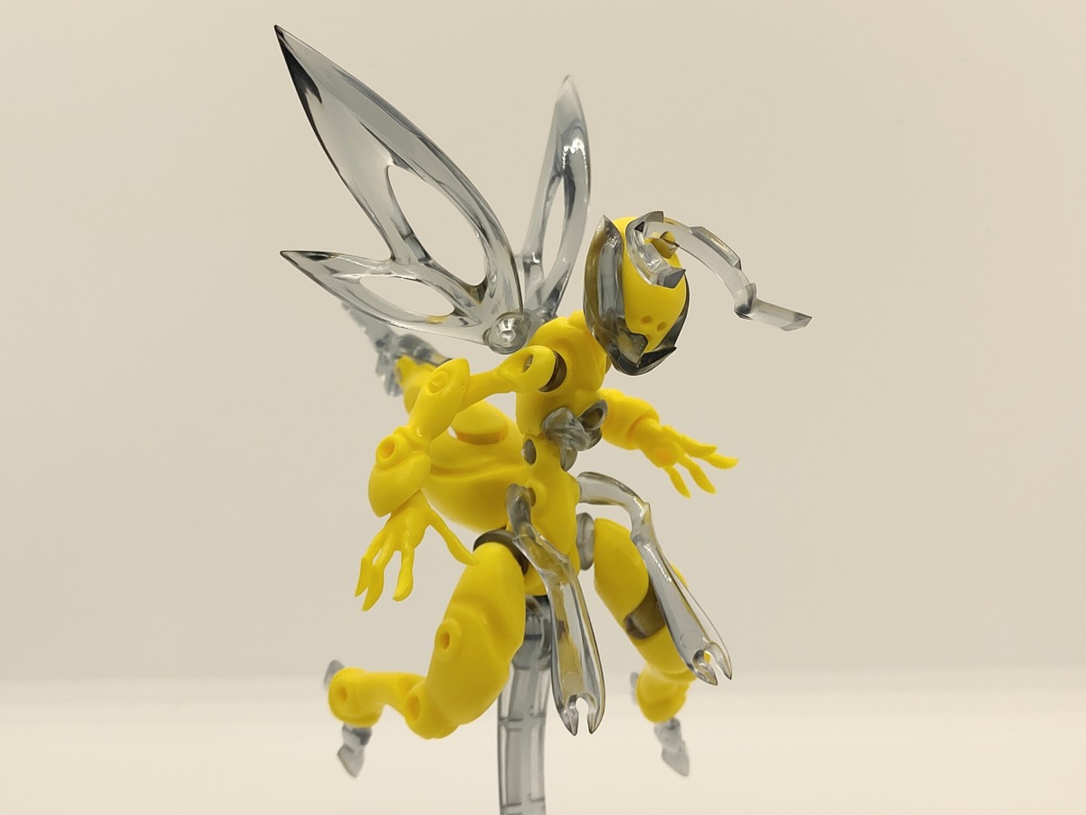 以上、-FORM Series- Bee Void Enhanced (フォームシリーズ ビーヴォイド エンハンスド)のレビューでした。動物型が続いていたフォームシリーズですが、今回初めての昆虫型で、触覚や角、中脚、羽などの昆虫特有の部位があってとてもカッコいいです。浮遊状態のポージングもとても映えます。さらに、変形ギミックもあって2つの形態で遊ぶことができます。それぞれの形態で特有のポージングを楽しめるため、遊べる幅が今まで以上に広いです。遊びすぎてジョイントが緩くなってしまわないように注意です。