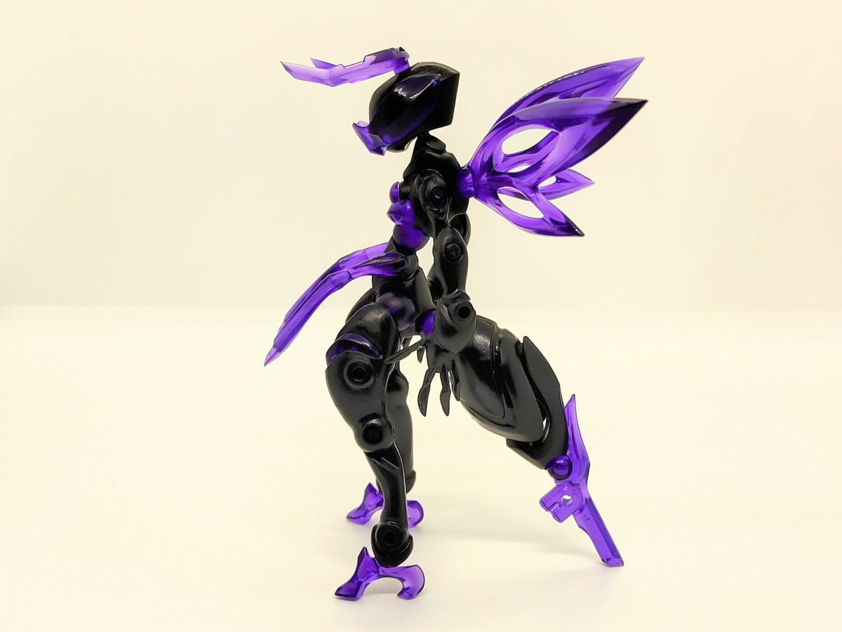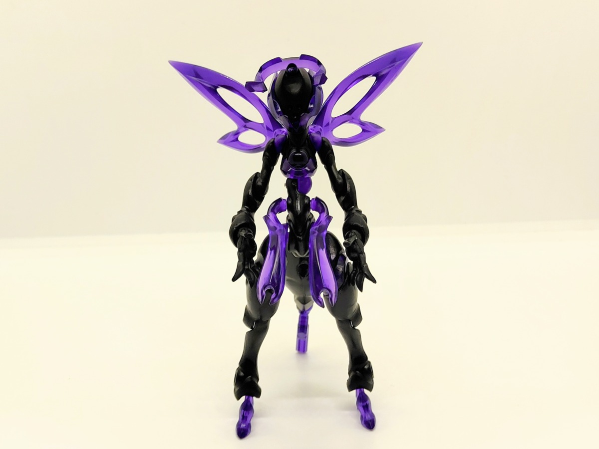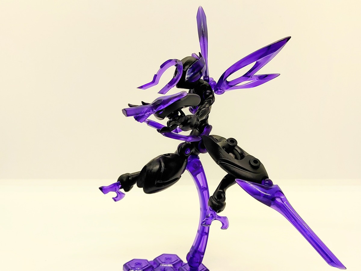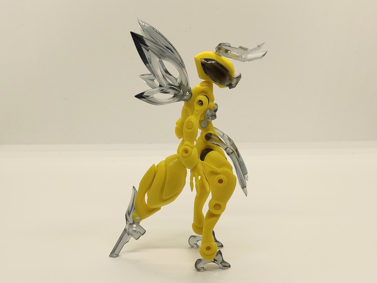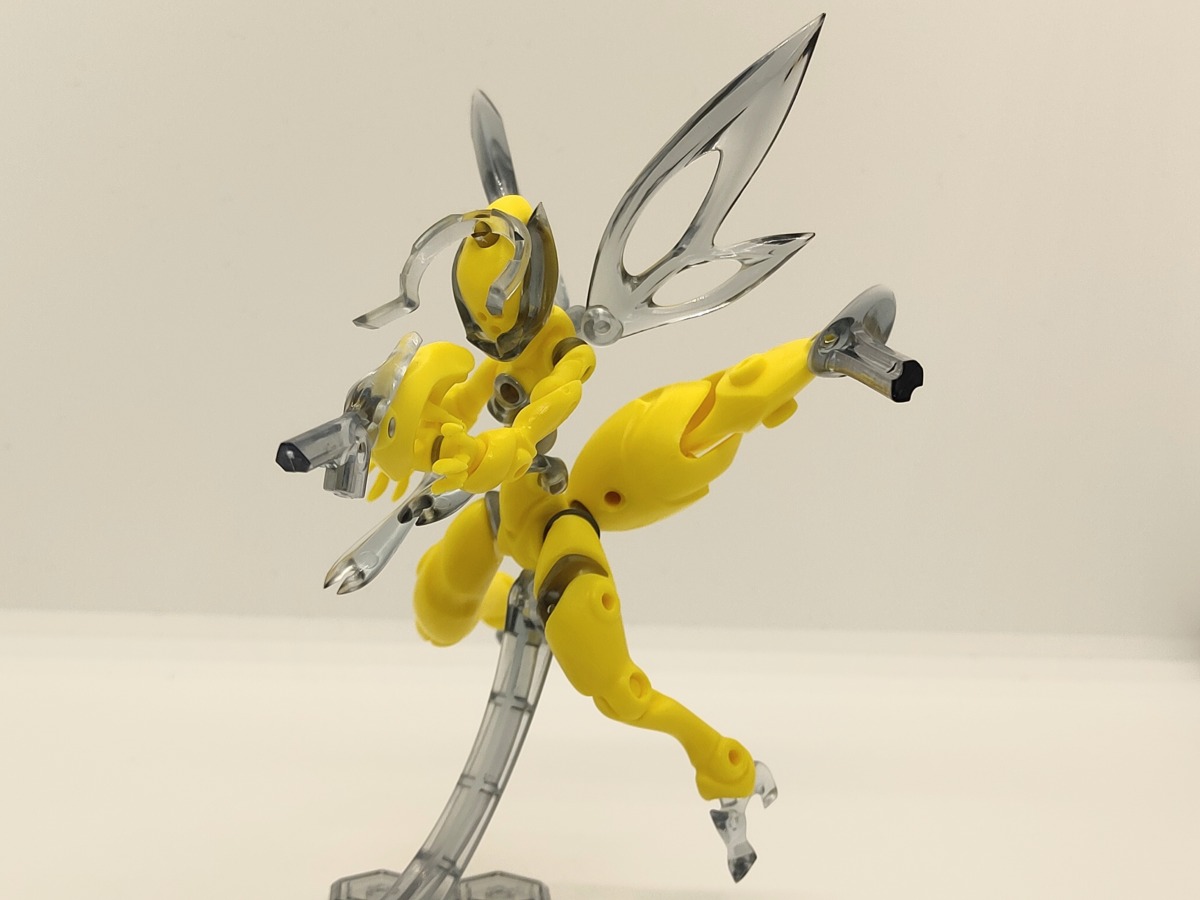 以上、-FORM Series- Bee Void Enhanced (フォームシリーズ ビーヴォイド エンハンスド)のレビューでした。動物型が続いていたフォームシリーズですが、今回初めての昆虫型で、触覚や角、中脚、羽などの昆虫特有の部位があってとてもカッコいいです。浮遊状態のポージングもとても映えます。さらに、変形ギミックもあって2つの形態で遊ぶことができます。それぞれの形態で特有のポージングを楽しめるため、遊べる幅が今まで以上に広いです。遊びすぎてジョイントが緩くなってしまわないように注意です。