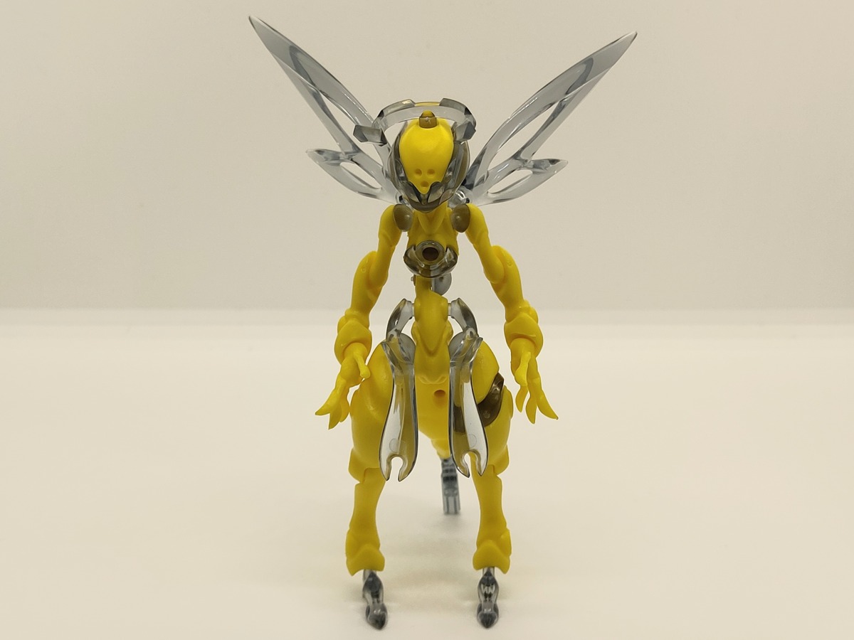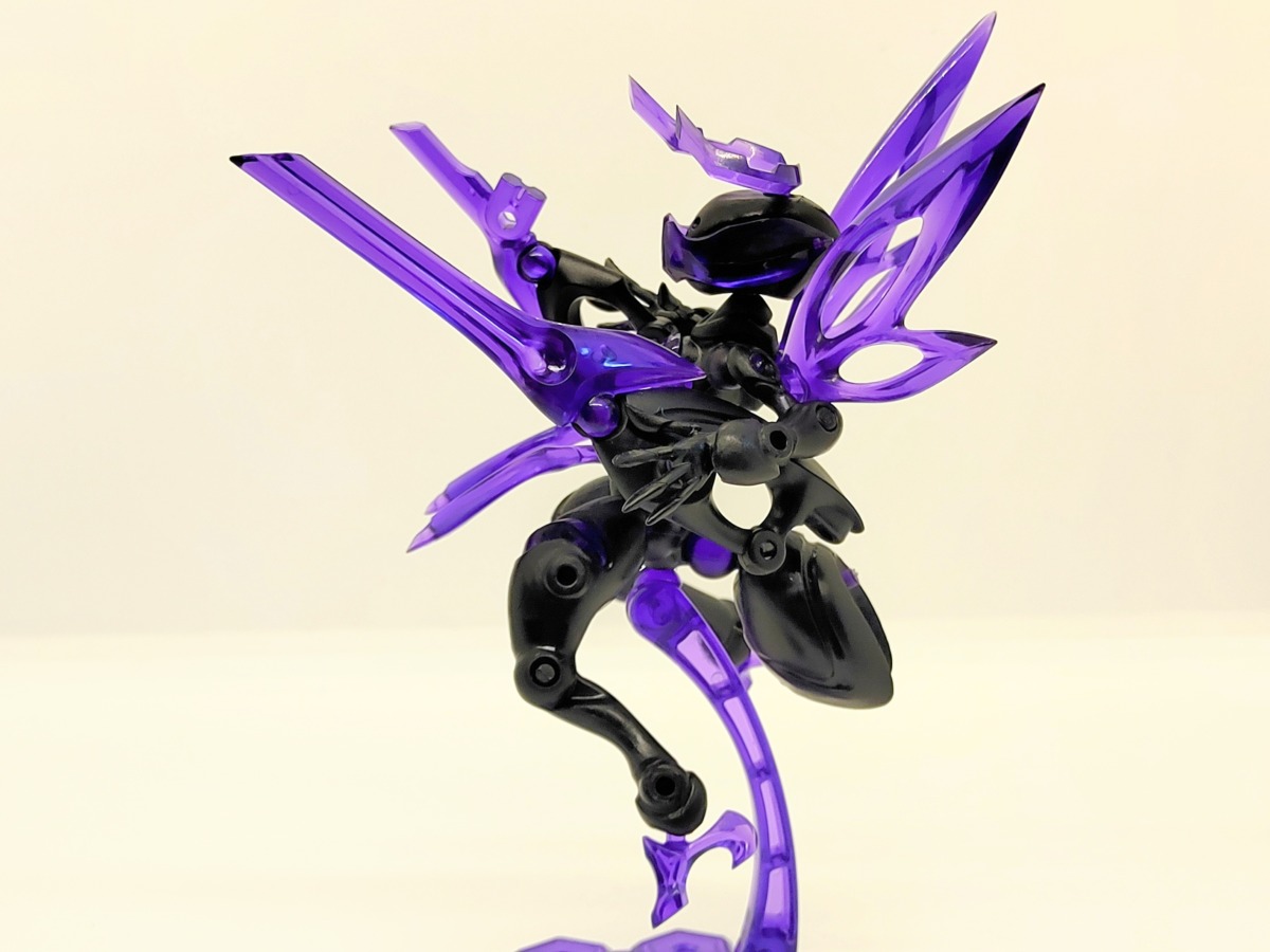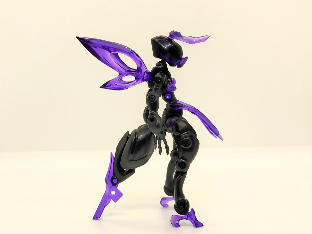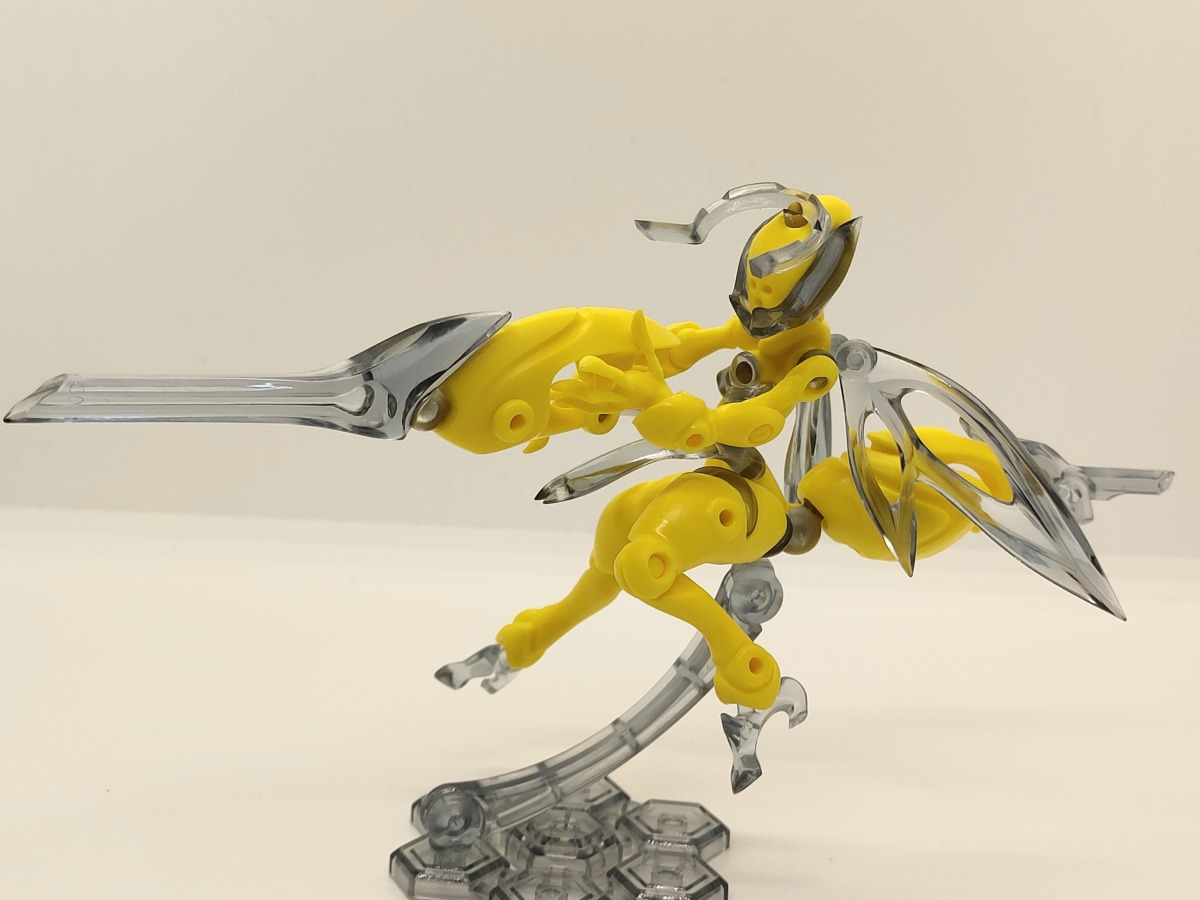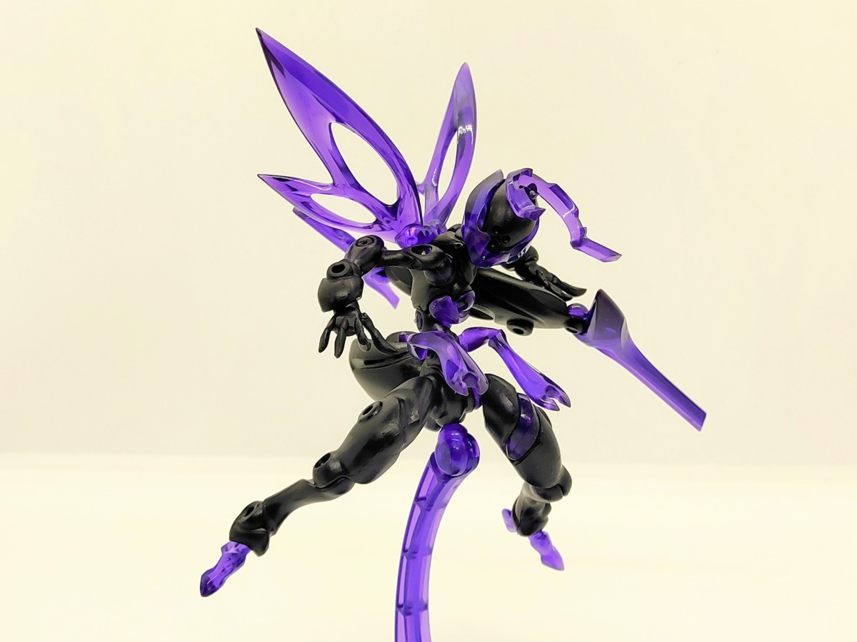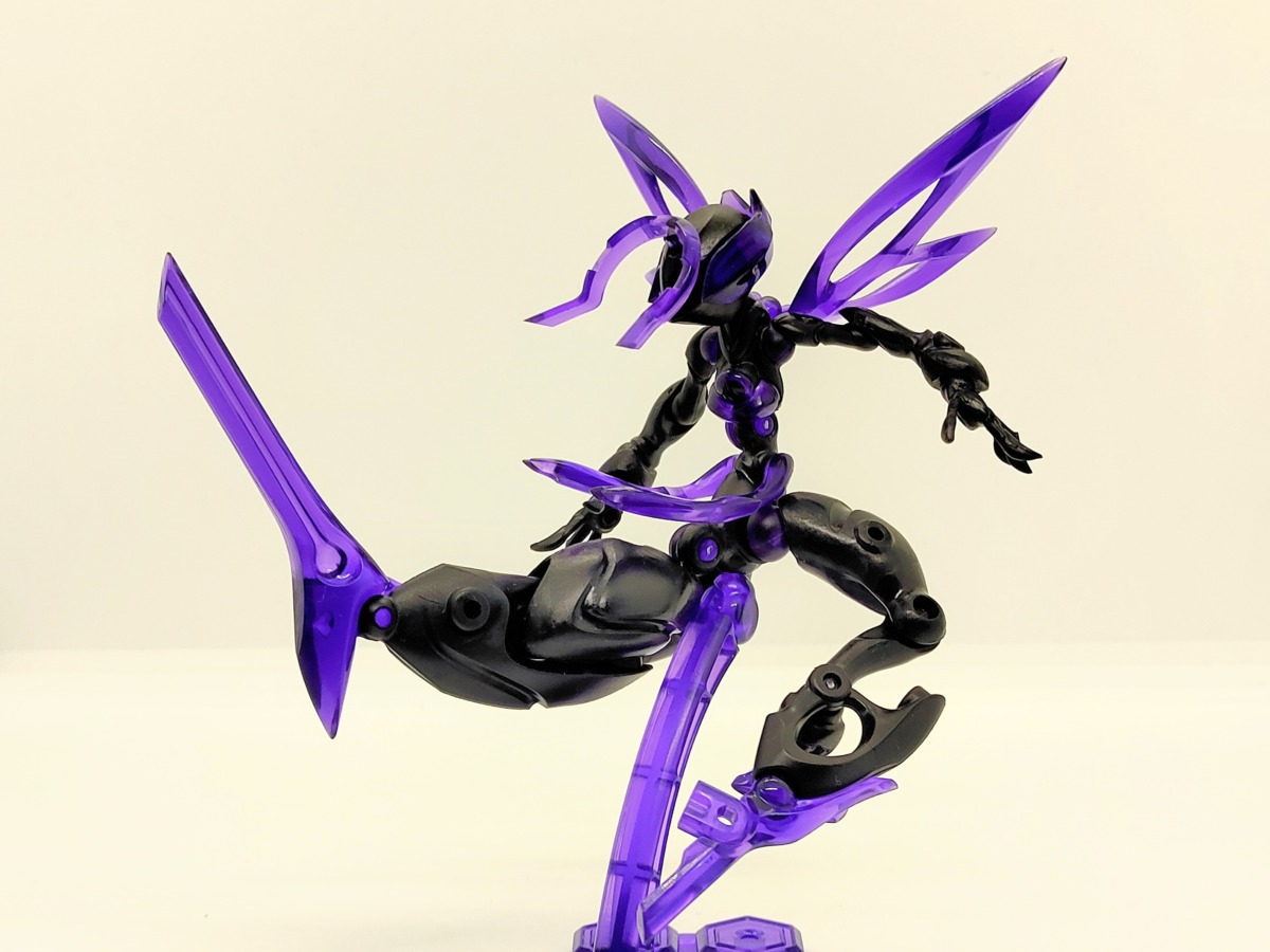 以上、-FORM Series- Bee Void Enhanced (フォームシリーズ ビーヴォイド エンハンスド)のレビューでした。動物型が続いていたフォームシリーズですが、今回初めての昆虫型で、触覚や角、中脚、羽などの昆虫特有の部位があってとてもカッコいいです。浮遊状態のポージングもとても映えます。さらに、変形ギミックもあって2つの形態で遊ぶことができます。それぞれの形態で特有のポージングを楽しめるため、遊べる幅が今まで以上に広いです。遊びすぎてジョイントが緩くなってしまわないように注意です。