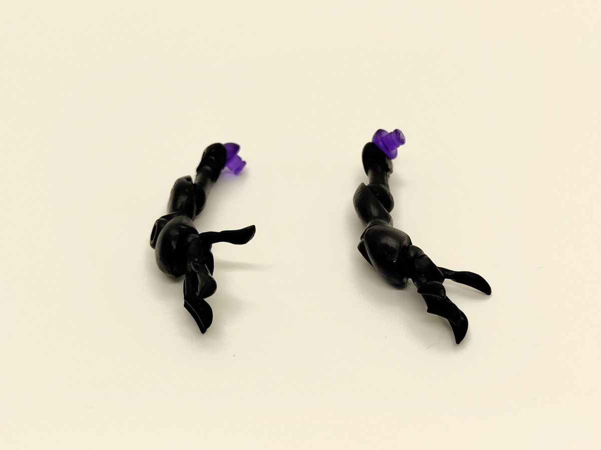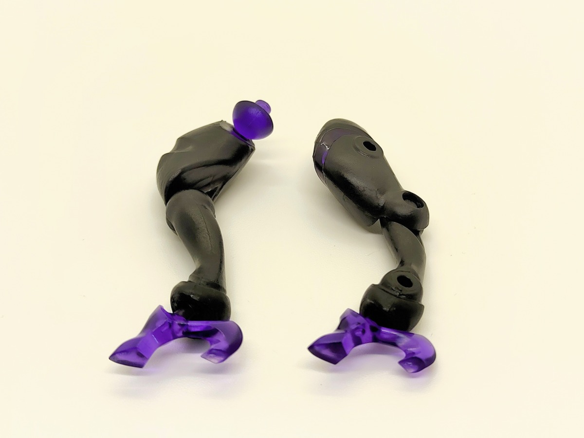 こちらは脚です。左の太ももにクリアパーツが使われています。鋭利な形をした足先が特徴的です。