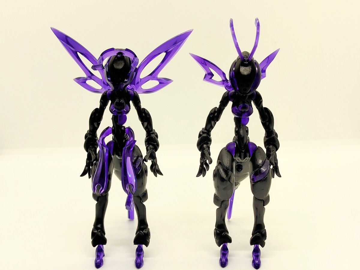 エンハンスド版にも同系統のカラーリングがあるため、せっかくなので見た目を比較してみます。正面から、中脚や触角など様々な違いがあり、やはり価格が違う分エンハンスド版の方が豪華に見えます。